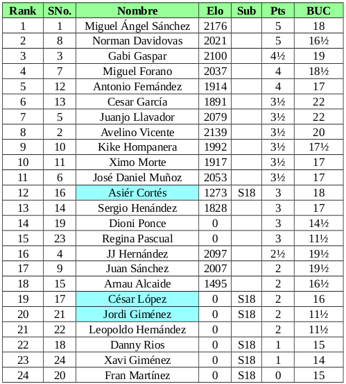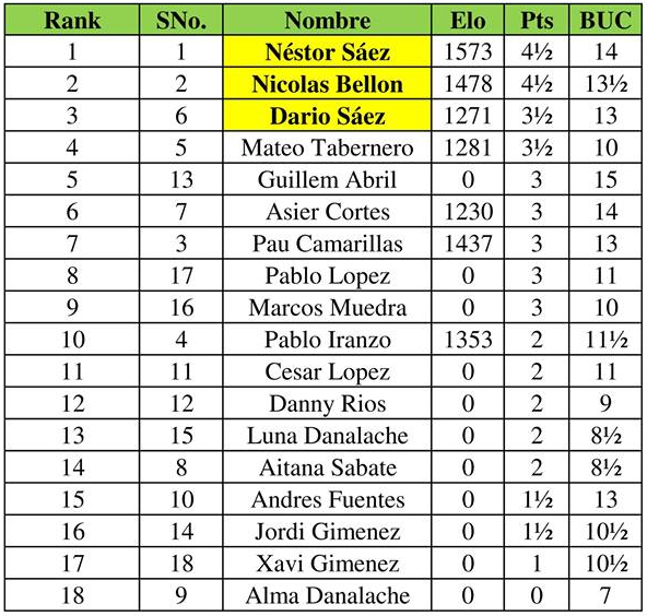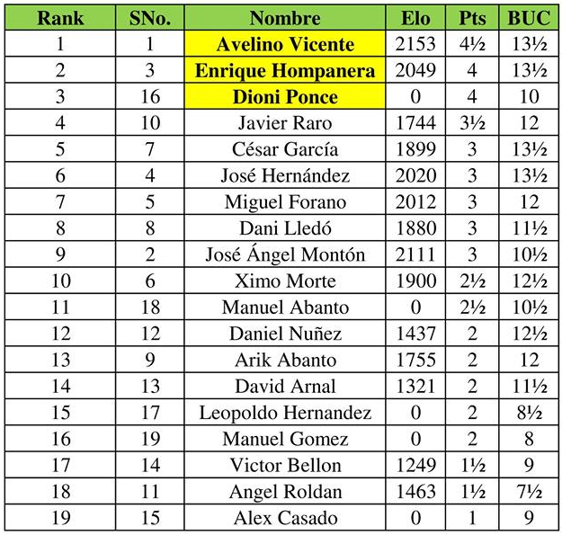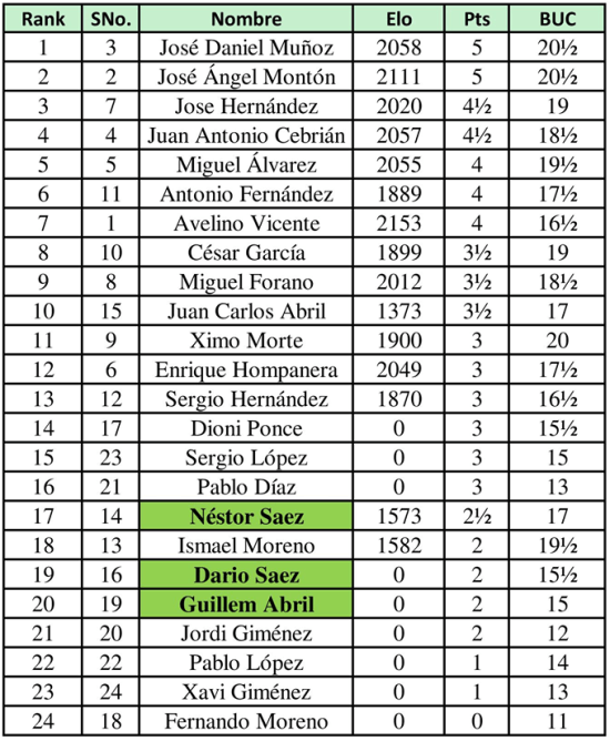 Clasificación final tras 5 rondas